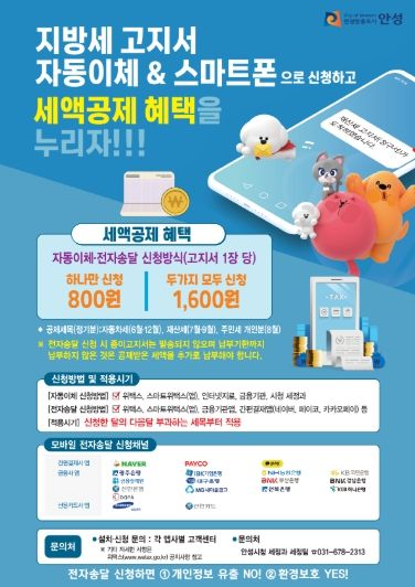 안성시 관계자는 “이번 세액공제 혜택 확대를 통해 더 많은 시민이 편리한 전자송달과 자동납부 서비스를 이용하길 바란다”며 “앞으로도 납세자 중심의 세정 서비스 개선을 위해 노력하겠다”고 밝혔다.