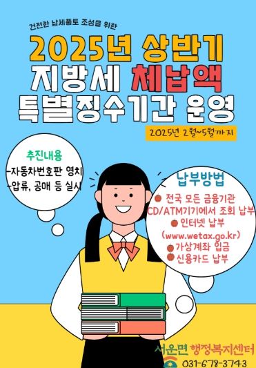 (중부시사신문) 서운면행정복지센터는 2월부터 5월까지 4개월간 2025년 상반기 지방세 체납액 정리를 위한 맞춤형 홍보와 특별징수에 나선다.