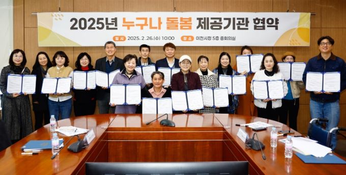 (중부시사신문) 이천시는 지난 26일 이천시청 중회의실에서 2025년 ‘누구나 돌봄’ 사업을 위해 16개 서비스 제공기관과 업무 협약을 체결했다고 밝혔다.