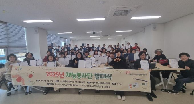 (중부시사신문) 이천시 자원봉사센터는 27일 재능봉사단 발대식을 개최하며 2025년 활동 계획을 공유했다. 발대식에는 총 60명의 단원이 참여했으며, 다양한 재능을 가진 봉사단이 뜻을 모아 나눔 활동을 펼칠 것을 다짐했다.