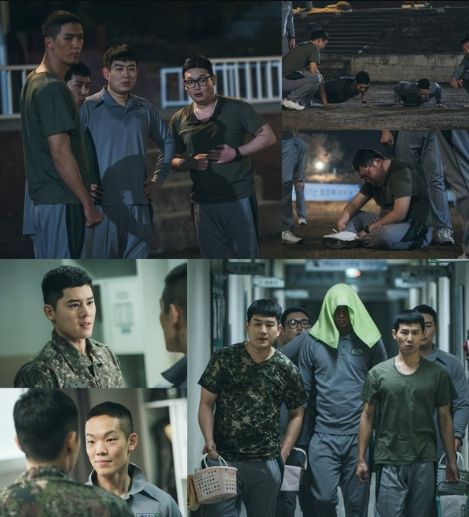 당황스러운 기색이 역력한 최일구(남태우 분), 박민석, 임다혜(전승훈 분)의 모습도 포착됐다. 이들의 시선 끝에는 구보를 마친 3생활관 신병 전세계(김동준 분)와 강찬석(이정현 분)이 1생활관 보란듯이 푸시업 세리머니(?)를 하고 있다.