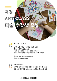 (재)평택시청소년재단 서정청소년문화의집(관장 신수미)은 2018년 지역연계사업의 일환으로 전문가 재능기부를 통한 청소년문화강좌의 전문성 및 다양성 제공의 첫 프로그램으로 『창의미술교술 Art Class』를 개설하였다.