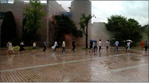 이날 훈련은 오후 2시 정각 라디오 등을 통해 화재를 가정한 상황이 전파되고 동시에 각 건물에서 화재 비상벨을 울리거나 건물 내 방송 실시로 대피 하는 훈련이 20분간 진행된다.