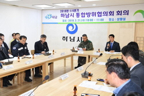 하남시(시장 오수봉)는 지난 21일 ‘2018년 1/4분기 하남시 통합방위협의회’를 시청 상황실에서 개최했다.
