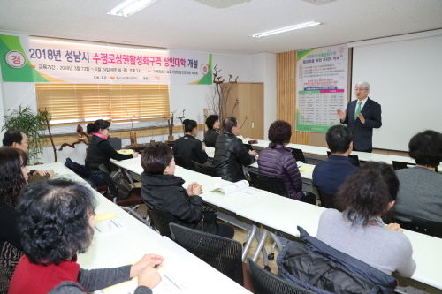 성남시의회(의장 김유석)는 3월 22 오후 2시 숯골사랑협동조합에서 열린 「2018년 성남시 수정로상권활성화구역 상인대학」교육에 참석했다.
