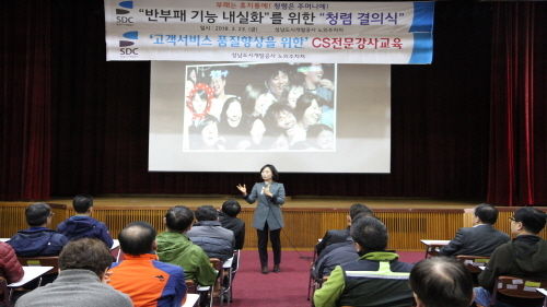 성남도시개발공사(사장 황호양)는 지난 23일 공사현장직원을 대상으로 고객만족 실현을 위한‘고객서비스 품질향상 교육’을 중원도서관 3층 시청각실에서 실시했다.