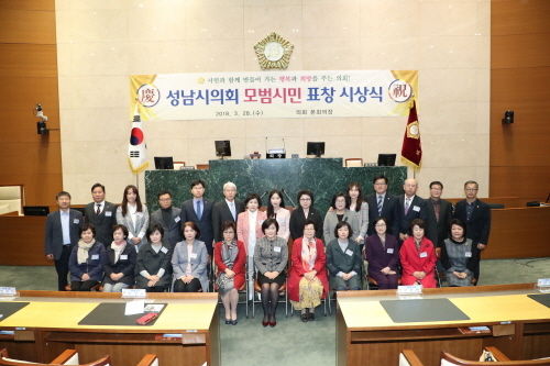 성남시의회에서는 3월 28일 오전 9시 30분 시의회 본회의장에서「성남시의회 모범시민 표창 시상식」을 가졌다.