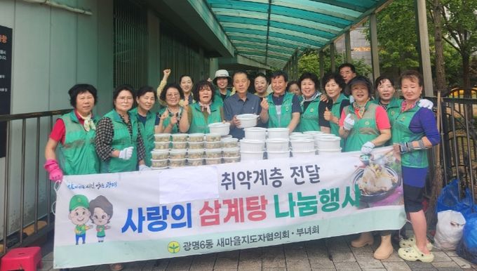 (중부시사신문) 광명시 광명6동 새마을지도자협의회(회장 김은성)와 부녀회(회장 이봉금)는 지난 17일 독거 어르신과 어려운 이웃이 건강하게 여름을 보낼 수 있도록 초복맞이 삼계탕 나눔 행사를 진행했다.