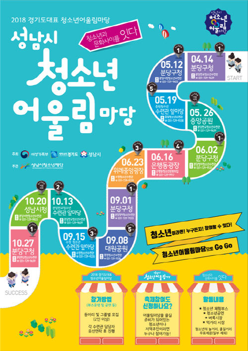 이번 개막을 시작으로 성남시청소년어울림마당은 올해 총13회 개최 하며 분당구청, 중앙공원, 성남시청소년재단 내 시설 등 성남시 전역을 청소년 문화1번길~문화6번길로 지정된 곳에서 청소년들의 문화교류의 장을 열게 된다.