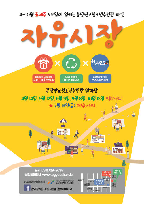 (재)성남시청소년재단 분당판교청소년수련관은 4월부터 10월까지 매월 둘째주 토요일에 수련관 앞마당에서 ‘청소년 재능나눔 자유시장’을 운영한다.