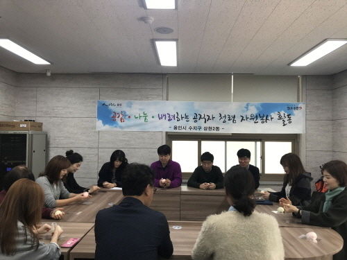 용인시 수지구 상현2동은 지난 16일 직원들이 소외계층에 전달할 천연비누 만드는 청렴봉사활동을 했다고 밝혔다.