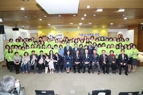 성남시의회(김유석 의장) 의원들은 4월 17 오후 6시 30분 한누리홀에서 열린「저출산 극복을 위한 출산장려 캠페인 선포식」에 참석하여 캠페인 참여자들과 함께 저출산으로 인한 사회적 심각성을 공감하고 출산장려 분위기 조성과 인식개선을 위한 소통의 시간을 가졌다.