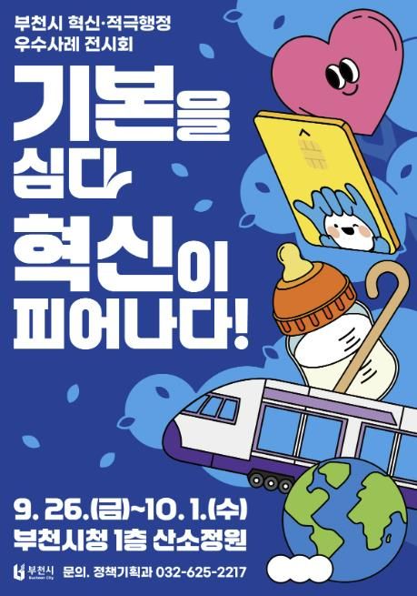 (중부시사신문) 부천시는 9월 26일부터 10월 1일까지 6일간 부천시청 1층 산소정원에서 ‘혁신‧적극행정 우수사례 전시회’를 연다. 이번 전시회는 ‘기본을 심다, 혁신이 피어나다!’를 주제로, 부천시가 시민의 행복과 소통을 중심으로 실천하는 혁신행정을 소개하기 위해 마련됐다.