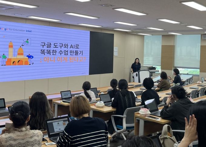 연수는 △창의적 문제 해결 능력을 키우는 교육 준비하기 △Gemini를 활용한 똑똑한 수업 만들기 △Google Vids로 창의적 수업 콘텐츠 제작 △Google의 협업 문화 ‘Grab-n-Go’ 체험 등으로 구성됐다. 특히, 교사들이 직접 구글 도구를 다루며 수업 시나리오를 개발하는 실습이 큰 호응을 얻었다.