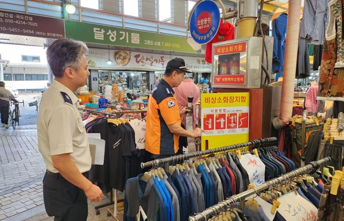 세종북부소방서는 시장 내 화재 취약 요인을 확인하고, 소방차 출동로 확보 상태를 점검했다.