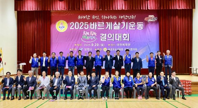 (중부시사신문) 보령시는 바르게살기운동보령시협의회(회장 이성천)가 29일 대천체육관에서 기관·단체장, 회원 및 시민 등 1,500여 명이 참석한 가운데 바르게살기운동 미소·친절·청결·칭찬 결의대회를 개최했다고 밝혔다.