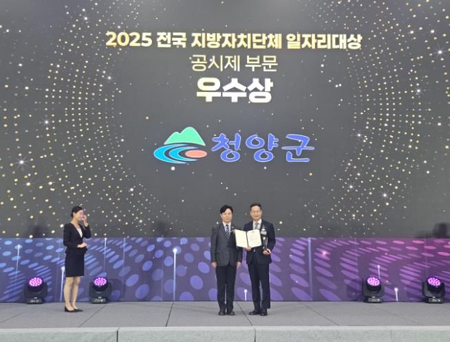(중부시사신문) 청양군은 지난 30일 청주오스코 2층 그랜드볼룸에서 열린 고용노동부 주관 ‘2025 전국 지방자치단체 일자리대상’ 공시제 부문에서 우수상을 수상했다고 밝혔다.