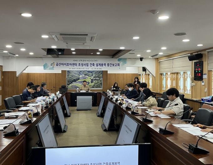 (중부시사신문) 금산군은 9월 30일 군청 상황실에서 금산아이조아센터 조성사업 건축 설계용역 중간보고회를 개최하고 사업 진행 상황을 점검했다.