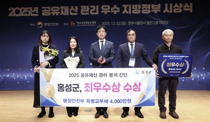 (중부시사신문) 홍성군은 행정안전부가 실시한 ‘2025년 공유재산 관리·분석 진단 평가’에서 최우수 자치단체에 선정되며 특별교부세 4천만원의 인센티브를 지원받게 됐다.
