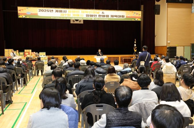 (중부시사신문) 계룡시는 23일 계룡시민체육관에서 장애인 체육 종목단체 선수, 임원 등 250여 명이 참석한 가운데 ‘2025 장애인 체육인의 날 및 한마음 체육대회’를 성황리에 개최했다.