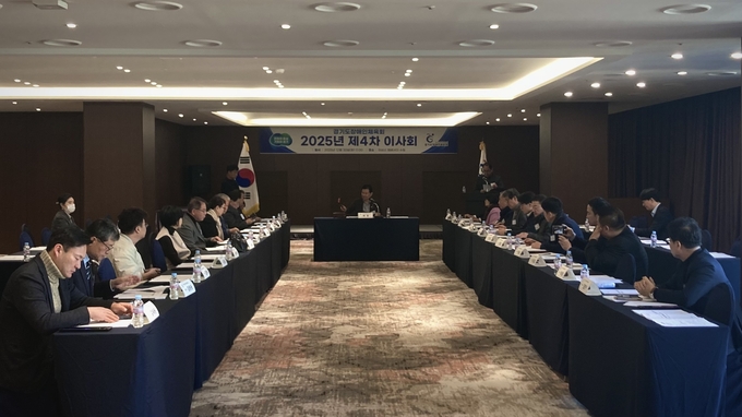 경기도장애인체육회(회장: 김동연 경기도지사)는 12월 30일(화) 이비스 앰배서더 수원에서 2025년 제4차 이사회를 개최했다. 이번 이사회에는 경기도장애인체육회 규약에 따라 신복용 부회장이 의장을 맡아 회의를 주재하였으며, 임원 20명이 참석한 가운데 진행되었다.