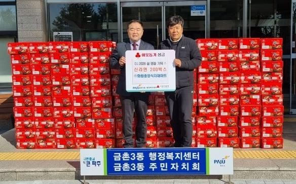 (중부시사신문) 파주시 금촌3동은 ㈜화림중앙식자재마트 파주금촌역점으로부터 병오년 설 명절을 맞아 지난 3일, 라면(20개입) 200상자를 관내 취약계층과 노인 가구를 위해 기탁하며 따뜻한 나눔을 실천했다.