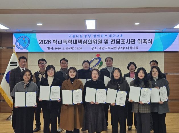 (중부시사신문) 충청남도태안교육지원청(교육장 지재규)은 10일(화), 태안교육지원청 대회의실에서 ‘2026-2027학년도 학교폭력대책심의위원회 위원 및 2026학년도 학교폭력 전담조사관 위촉식’을 개최했다.