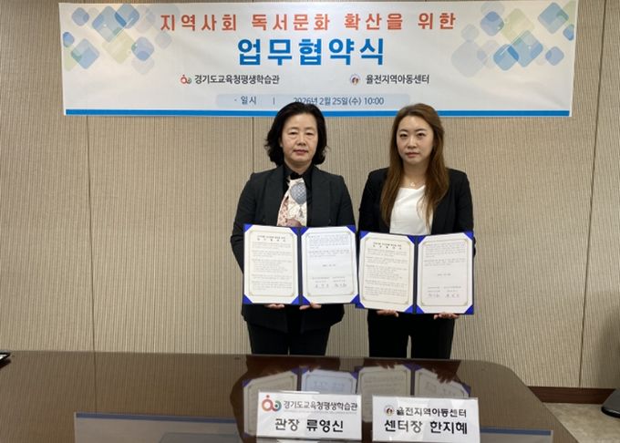 (중부시사신문) 경기도교육청평생학습관이 25일 지역사회 어린이들의 독서문화 확산과 다양한 독서프로그램 개발을 위해 율전지역아동센터(센터장 한지혜)와 업무협약을 체결했다.