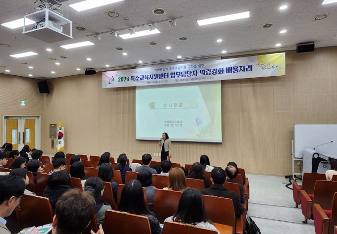(중부시사신문) 충남교육청은 13일 충청남도교육청과학교육원(아산)에서 교육지원청 특수교육 담당 장학사와 특수교육지원센터 업무 담당자 140여 명을 대상으로 ‘2026 특수교육지원센터 업무 담당자 역량 강화 연수’를 개최했다.