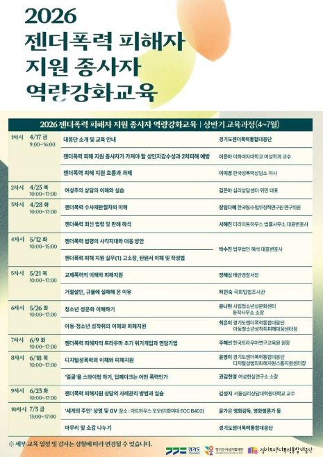 (중부시사신문) 경기도와 경기도젠더폭력통합대응단이 17일 도내 젠더폭력 피해 지원 현장 종사자들의 전문성 향상을 위한 ‘2026 역량강화 교육’ 상반기 과정을 시작하며 현장 대응력 강화에 나섰다.