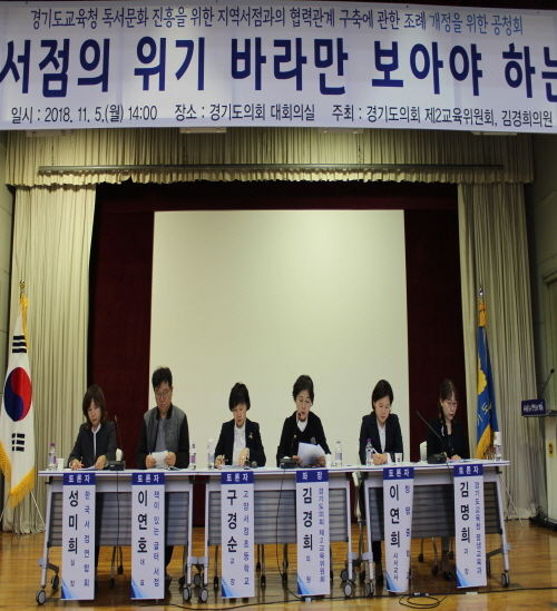 이날 공청회는 ‘지역서점의 위기, 바라만 보아야 하는가?’는 주제로 개최되었으며, 한기호 한국출판마케팅연구소 소장의 발제와 토론에는 성미희 한국서점연합회 실장, 이연호 책이있는 글터서점 대표, 구경순 고양서정초등학교장, 이연희 청평중학교 사서교사, 김명희 경기도교육청 평생교육과장이 참여하였으며, 김경희 의원이 좌장을 맡았다.