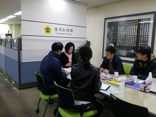 경기도의회 보건복지위원회 권정선 의원(더민주, 부천5)은 지난 12일 부천상담소에서 부천시 공원조성과 관계자들과 정명약수터 주변 노후시설 정비 및 산책, 휴게 공간조성(부지면적:7,728㎡, 사업예산: 약12억 원)을 위한 논의하는 시간을 가졌다.
