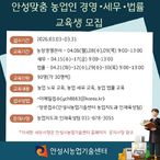 • 안성시, '안성맞춤 농업인 경영·세무·법률 교육' 교육생 모집!