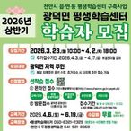천안시, 광덕·북면·입장면 읍면동평생학습센터 수강생 모집