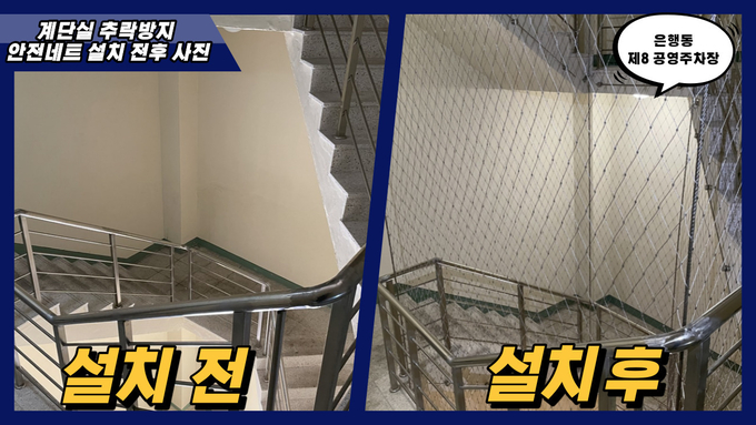 성남도시개발공사(사장 윤정수, 이하 공사)는 은행동제8공영주차장 계단실 중앙부의 빈 공간을 통해 발생할 수 있는 추락사고 예방을 위해 안전네트를 설치했다고 밝혔다.