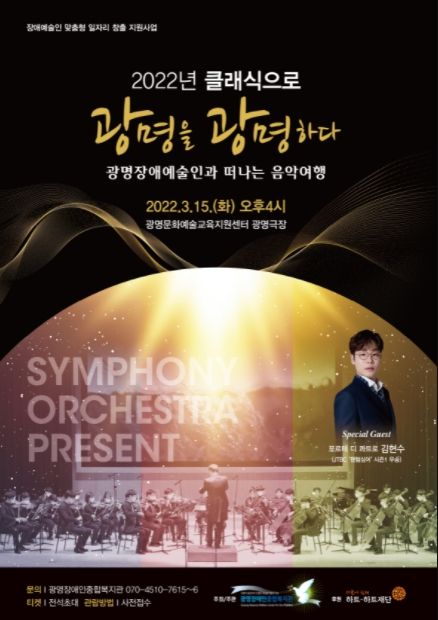 이번 공연에서는 루멘·다소니장애청년챔버오케스트라단의 가곡과 클래식 등 다양한 장르의 연주가 한시간 동안 펼쳐질 예정이며, 팬텀싱어1 우승자 포르테 디 콰트로의 김현수씨가 게스트로 초대되어 장애인예술인들과 하모니를 선사할 예정이다. 특별기획공연 ‘2022 클래식으로 광명을 광명하다!’는 광명장애인종합복지관의 유튜브 채널인‘광나는 TV’를 통해서도 녹화본으로 관람할 수 있다.