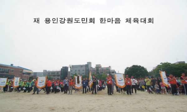 재 용인강원도민회(회장 김미림) 한마음 체육대회가 28일 오전 용인중학교 운동장에서 정찬민 용인시장, 이우현 국회의원, 백군기 국회의원, 이상일 국회의원과 도의원 ‧ 시의원과 사회각 단체장들과 7개 지역 강원도민 회원 1.000여명이 참여한 가운데 성대하게 개최 되었다.