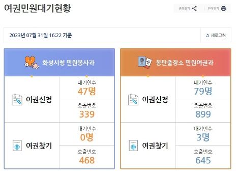 (중부시사신문) 화성시가 ‘여권 민원 대기인수 화성시청 홈페이지 조회 서비스’를 1일부터 시행한다.