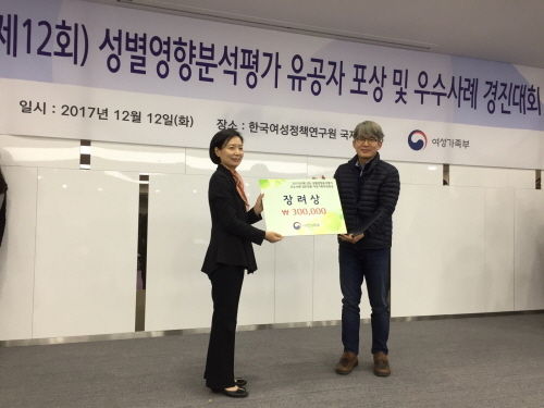 화성시가 12일 한국여성정책연구원에서 열린 ‘2017년 전국 성별영향분석평가 우수사례 경진대회’에서 장려상을 수상했다.