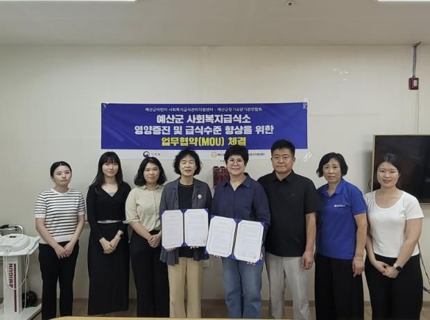 (중부시사신문) 예산군 어린이·사회복지급식관리지원센터는 예산군 장기요양기관연합회와 관내 어르신의 건강 및 영양 증진을 위한 업무협약을 체결했다고 1일 밝혔다.