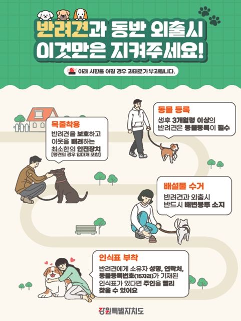 아울러, 반려동물 동행 캠페인은 도내 18개 시군과 강원도수의사회 등과 협력해 추진된다.