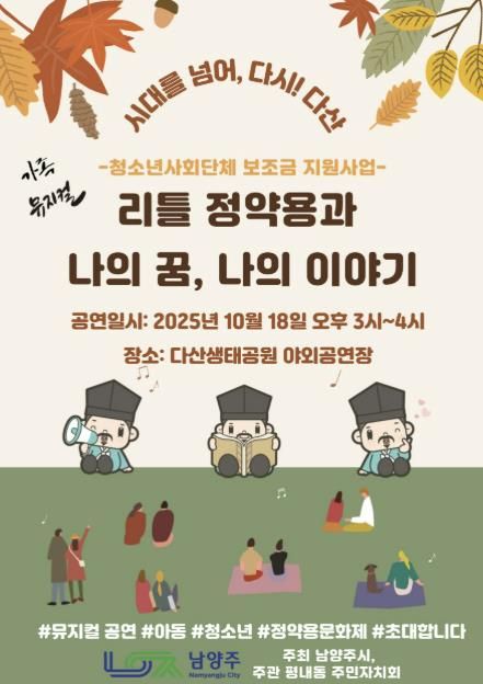 (중부시사신문) 남양주시는 오는 10월 18일 조안면 다산생태공원에서 아동·청소년 대상 가족뮤지컬인 ‘리틀 정약용’을 선보인다.