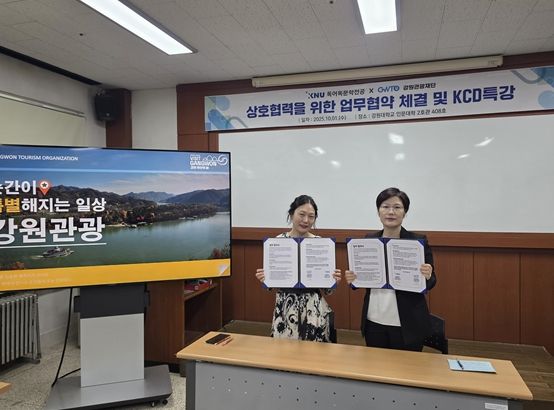 (중부시사신문) 강원관광재단 글로벌마케팅실은 10월 1일 강원대학교 독어독문학전공과 글로벌 관광 전문 인재 양성을 위한 업무협약(MOU)을 체결했다.
