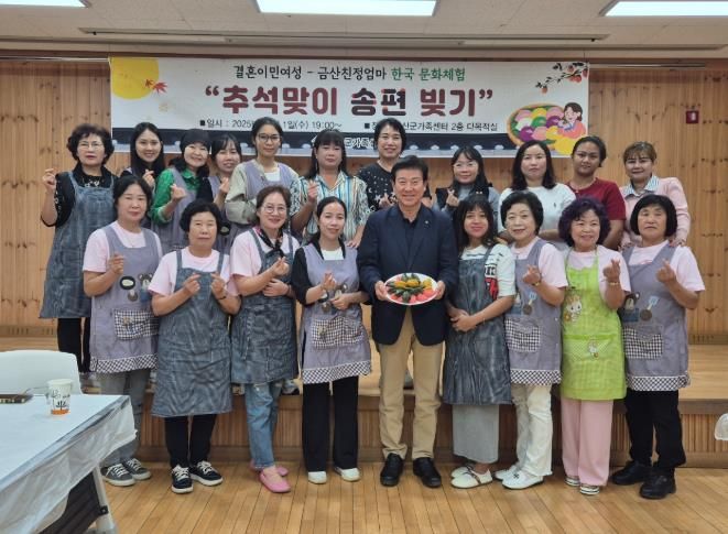이날 박범인 금산군수는 행사장을 찾아 지역에 잘 적응하고 있는 결혼이주여성들을 격려하고 함께 송편을 빚는 시간을 가졌다.
