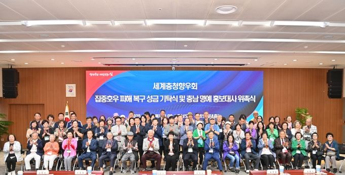 이 세계충청향우회장은 “지난해에 이어 올해도 고향 충남에 집중호우로 큰 피해가 있었던 것으로 안다. 복구에 조금이나마 힘이 되길 바란다”라며 “충남 명예 홍보대사로 위촉된 만큼 세계충청향우회 회원들과 함께 충남을 알리는 데 기여할 것”이라고 말했다.
