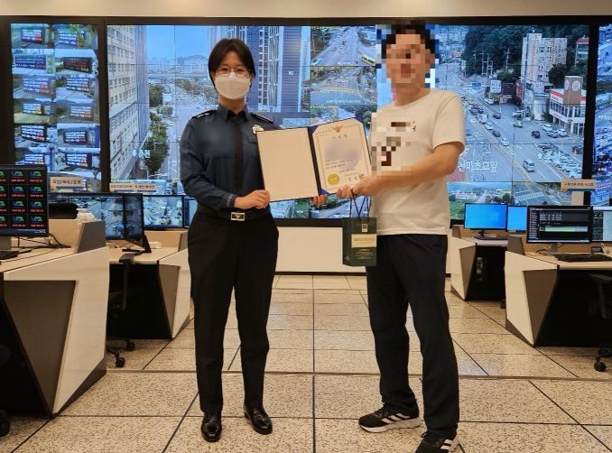 이에 해당 관제요원은 피혐의자를 특정해 신고한 공로를 인정받아 북부경찰서 임실기 서장으로부터 감사장을 받았다.