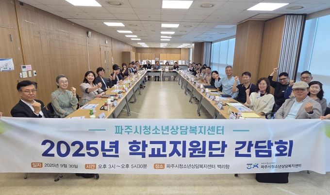 (중부시사신문) (재)파주시청소년재단 파주시청소년상담복지센터(센터장 장문희)는 9월 30일 오후 3시, 센터 내 백리향에서 관내 초·중·고 33개교 교장을 대상으로 '2025년 청소년안전망 학교지원단 간담회'를 개최했다.