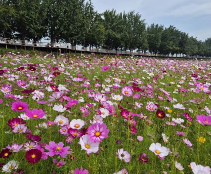 아산시 곡교천, 백일홍·코스모스 등 가을꽃 만개