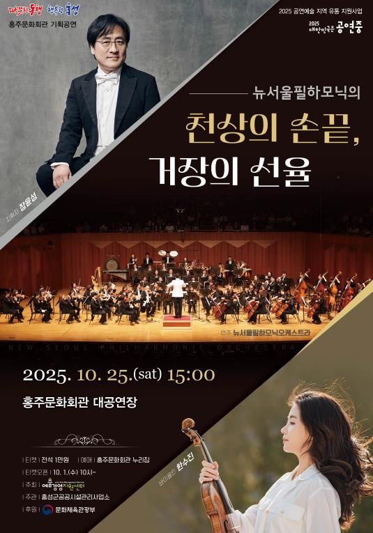 (중부시사신문) 깊어가는 가을에 어울리는 정통 클래식 오케스트라 공연 ‘뉴서울필하모닉의 천상의 손끝, 거장의 선율’이 오는 25일 오후 3시, 홍성군 홍주문화회관에서 열린다.