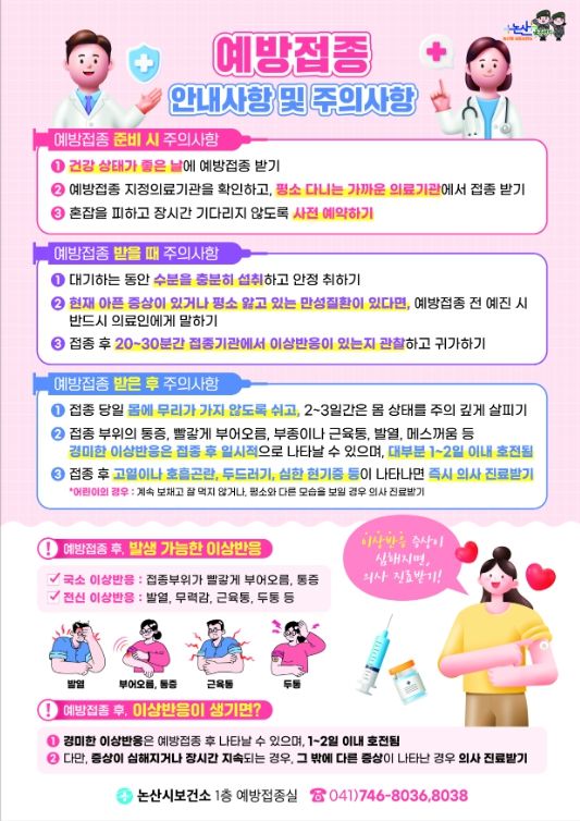 논산시 관계자는 “예방접종은 감염병에서 자유로운 노후를 위한 최선의 수단”이라며 “대상에 해당하시는 분들은 가까운 접종기관을 통해 빠짐없이 무료 접종 혜택을 받으시기 바란다”고 당부했다.